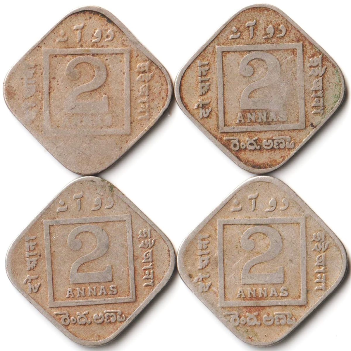 4 Coins Set of 2 Annas Different Date Copper-Nickel Coins Of King George V British India Coinage