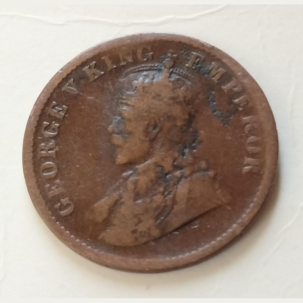 - BRITESH INDIA KING AND EMPEROR GEORGE V DENOMINATION ONE QUARTER ANNA YEAR 1911 weak condition