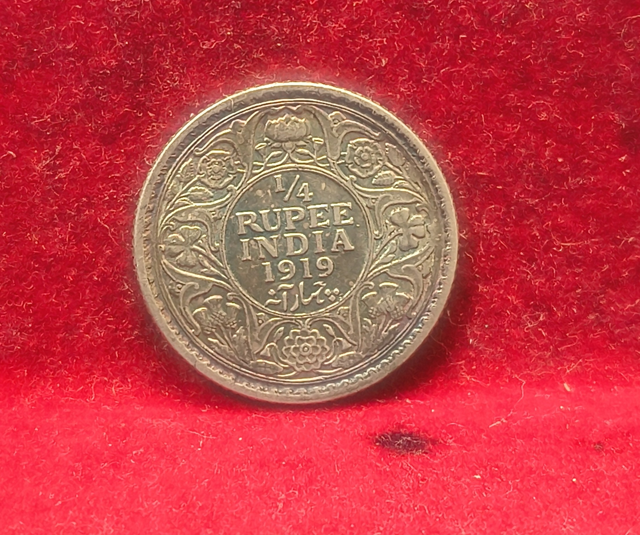 British India 1/4 Rupee 1919 (George V) Rare Silver Coin #AA-119