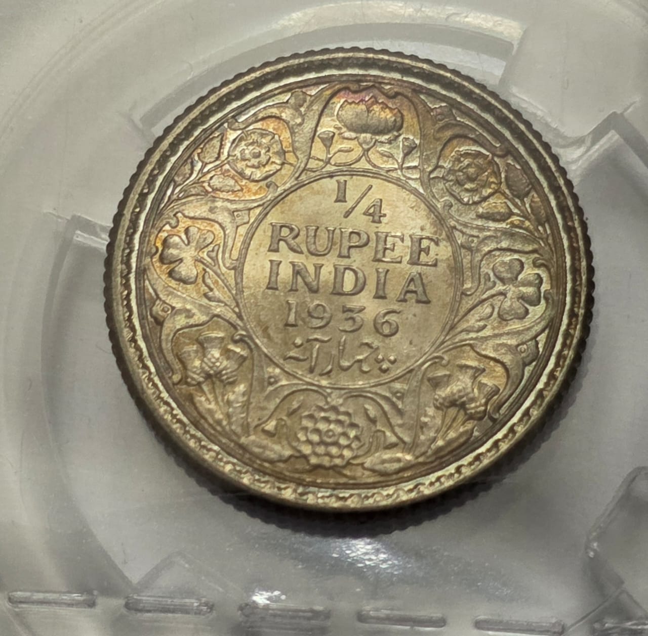 British India George V 1/4 Rupee 1936 Silver Coin UNC