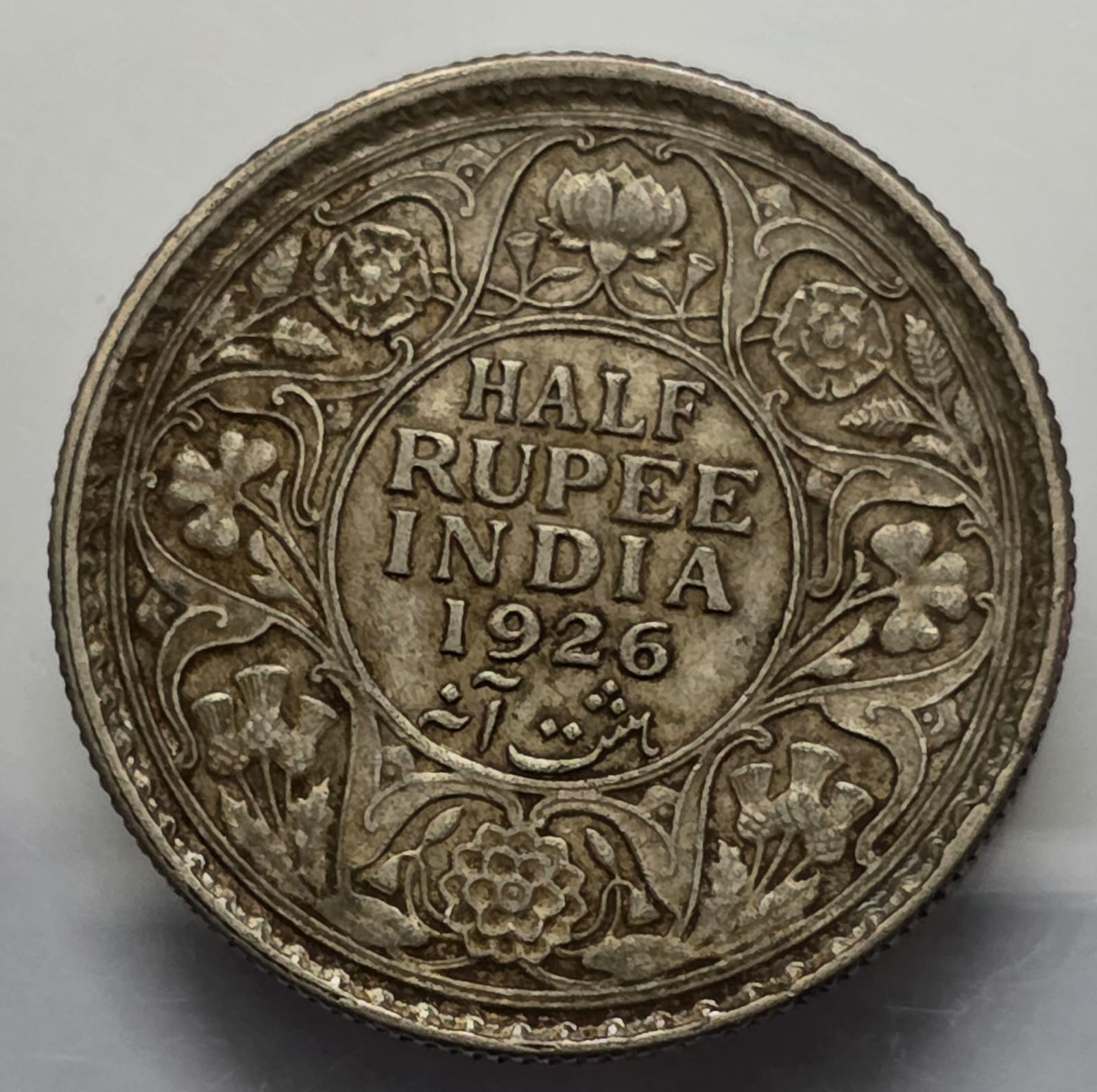 British India George V Half Rupee 1926 Silver Coin High Grade