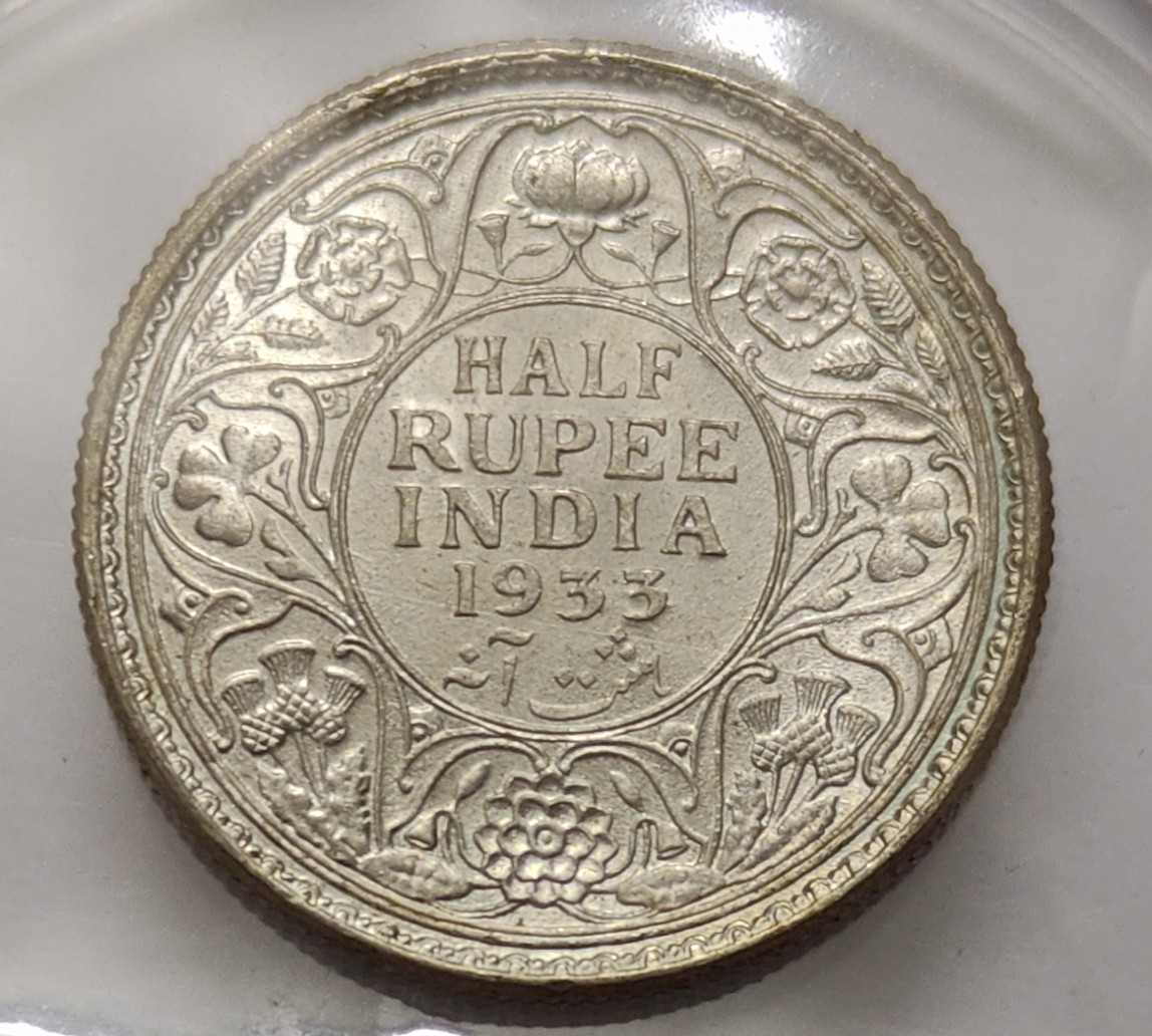 British India George V Half Rupee 1933 Silver Coin Bunc Rare