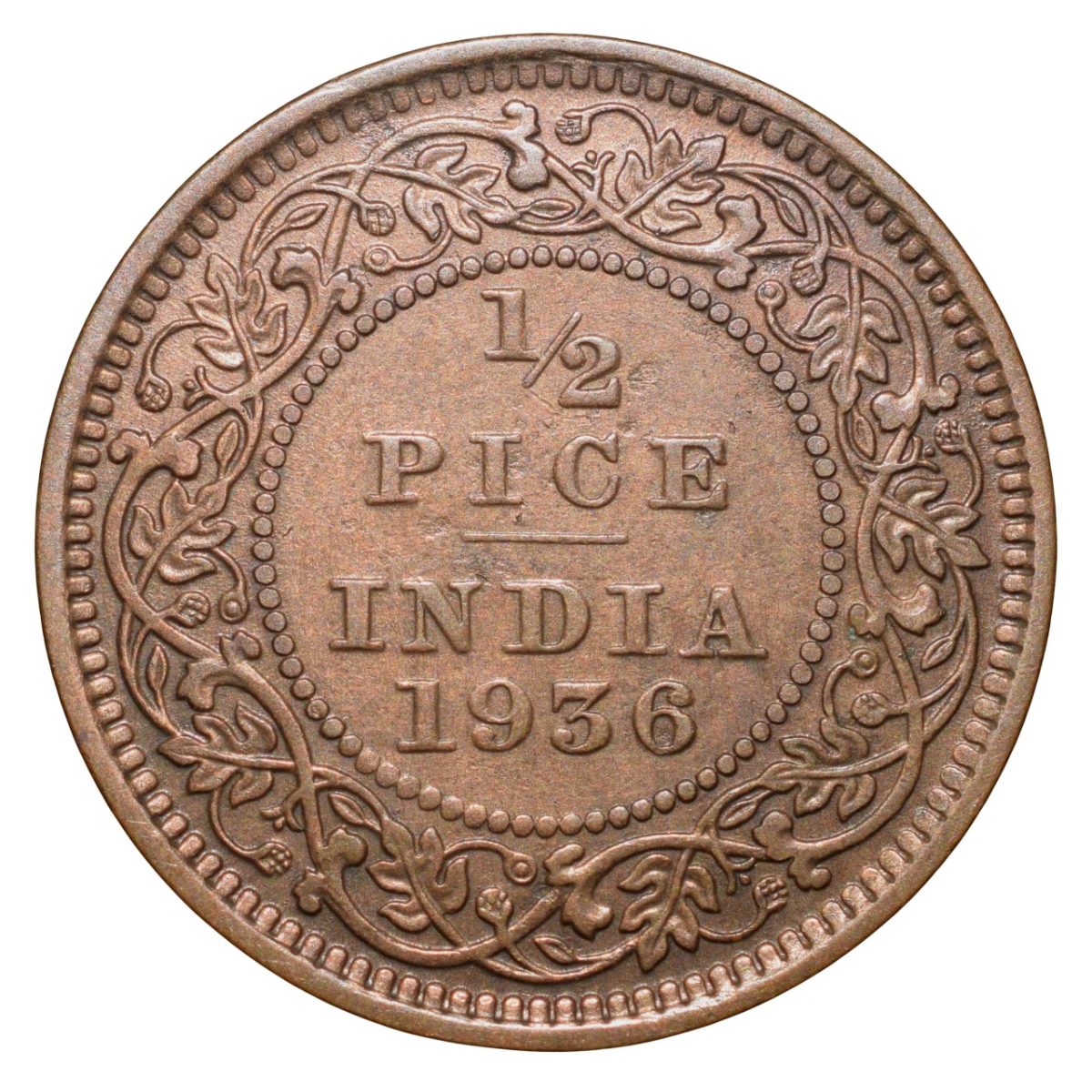 Bronze 1/2 Pice of George V (AD 1936) of Calcutta Mint