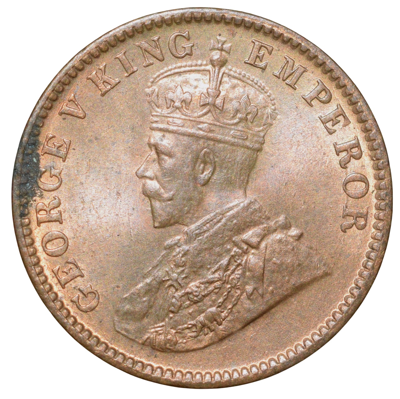 George V, (AD 1933), Bronze 1/4 Anna, Calcutta Mint, Obv: George V facing left, Inscription around, Rev: Denomination & Date, Die-Clash Error with obverse Portrait visible on Reverse in Negative Impression, UNC Grade as per Image, Rare.