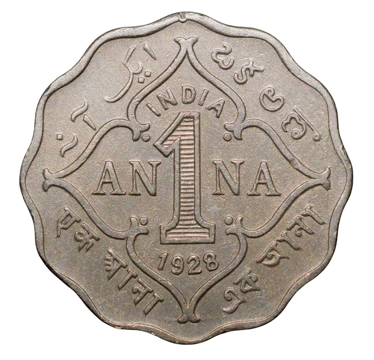 George V, (AD 1928), Copper-Nickel 1 Anna, Calcutta Mint, Obv: George V facing left, Rev: Denomination & Date, 3.88 Gms, 20.20 mm, (KM513), About Very Fine, Scarce Date.