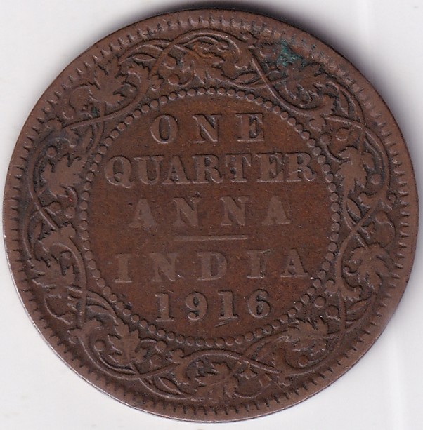 Ex rare 1/4 Anna 1916 British India King George V Coin #2
