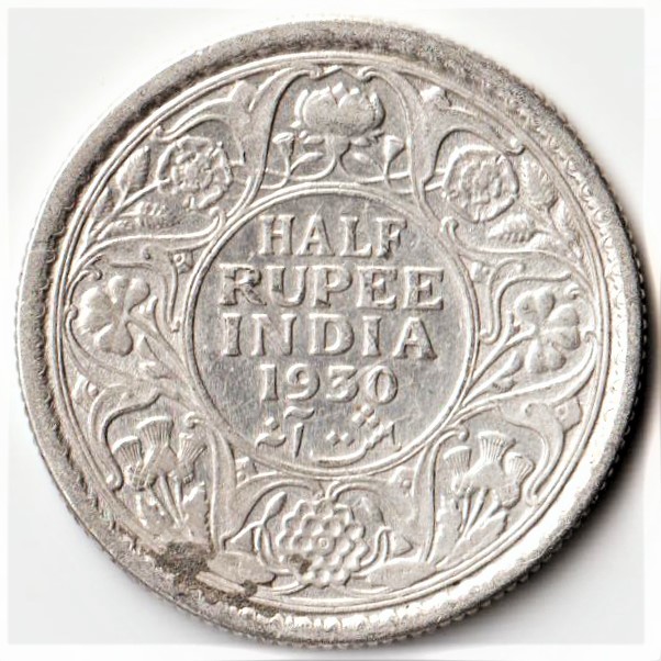 Extremely Rare Half Rupee 1930 George V King Emperor Silver Coin Lowest Price British India Coin