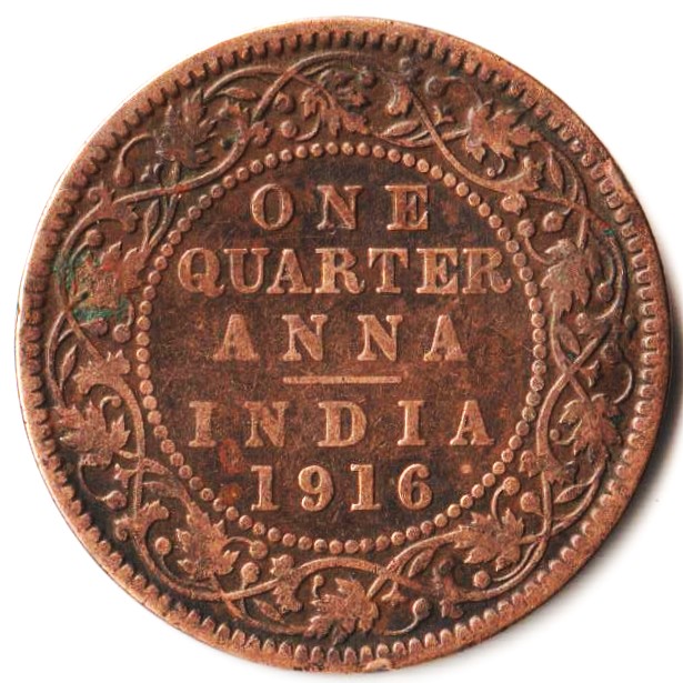 Extremely Rare One Quarter Anna 1916 George V Calcutta Mint Coin of British India Coinage