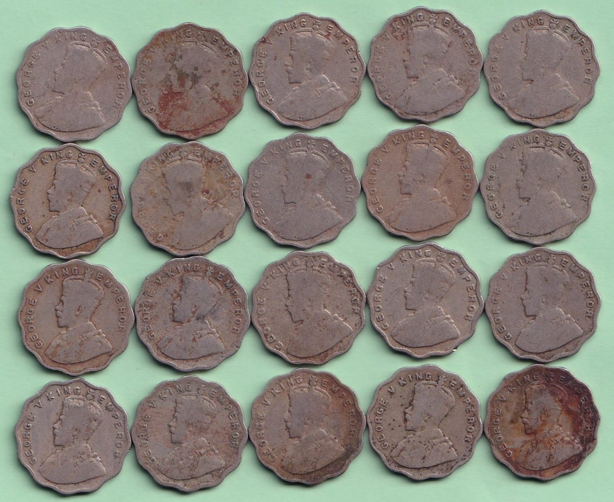 George Fifth One anna Completely set 1912 to 1936 except 1915 Totally 20 pcs set