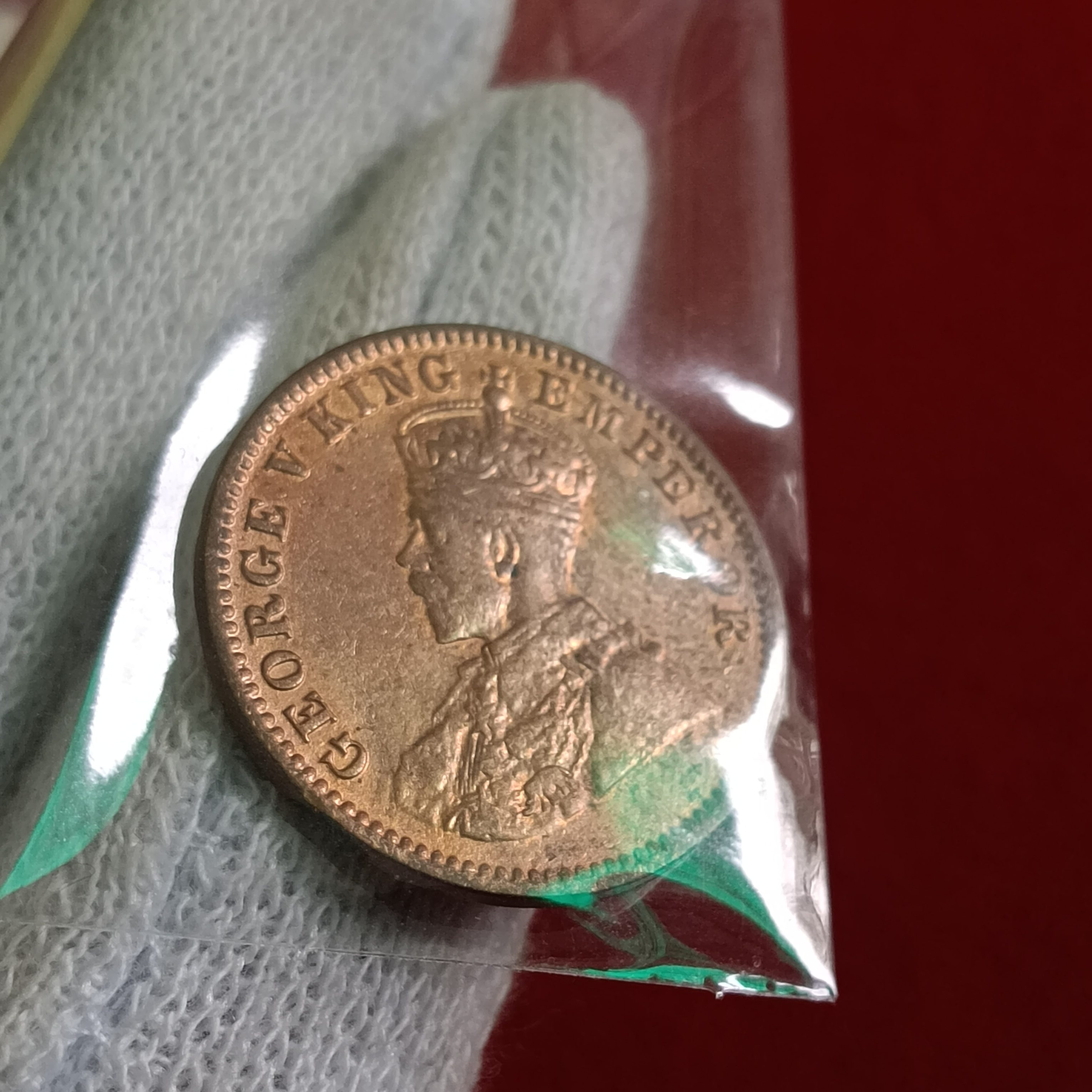 - George V One Quater Anna 1918 Year Calcutta Mint Unc Condition British of India