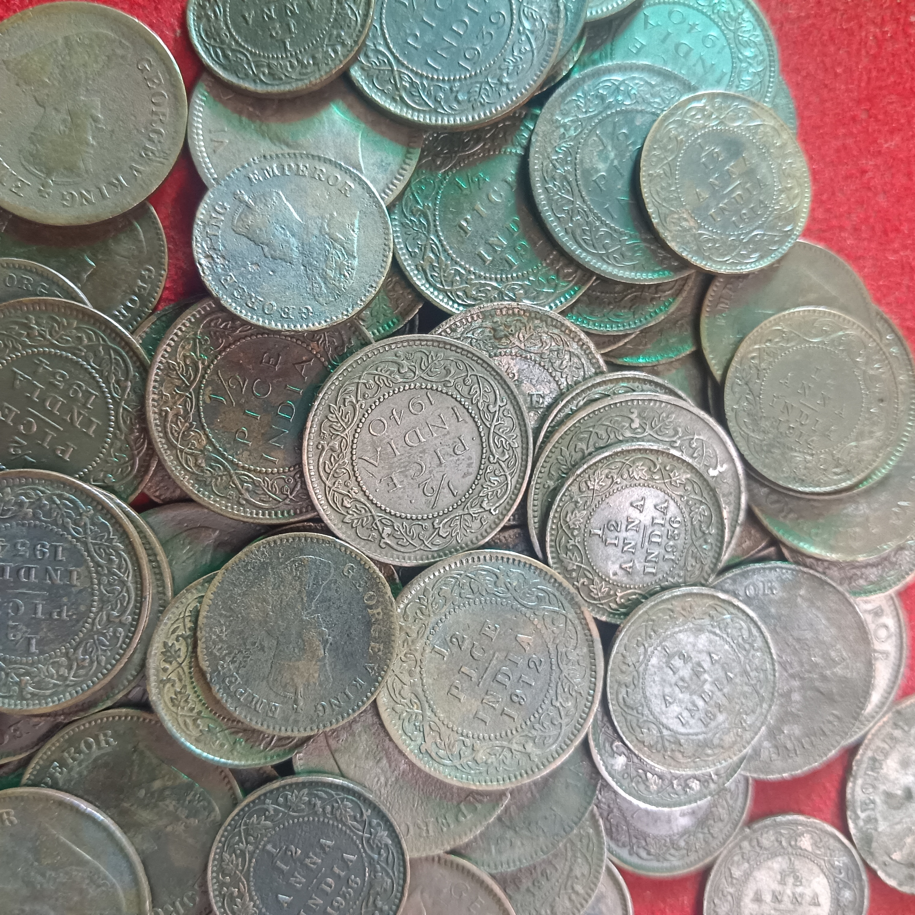 George V or Vi Bronze Coins1/12 or 1/2 Anna 1917-1940 Mix 100 Pcs Given Aunc or Xf Condition British of India Coins