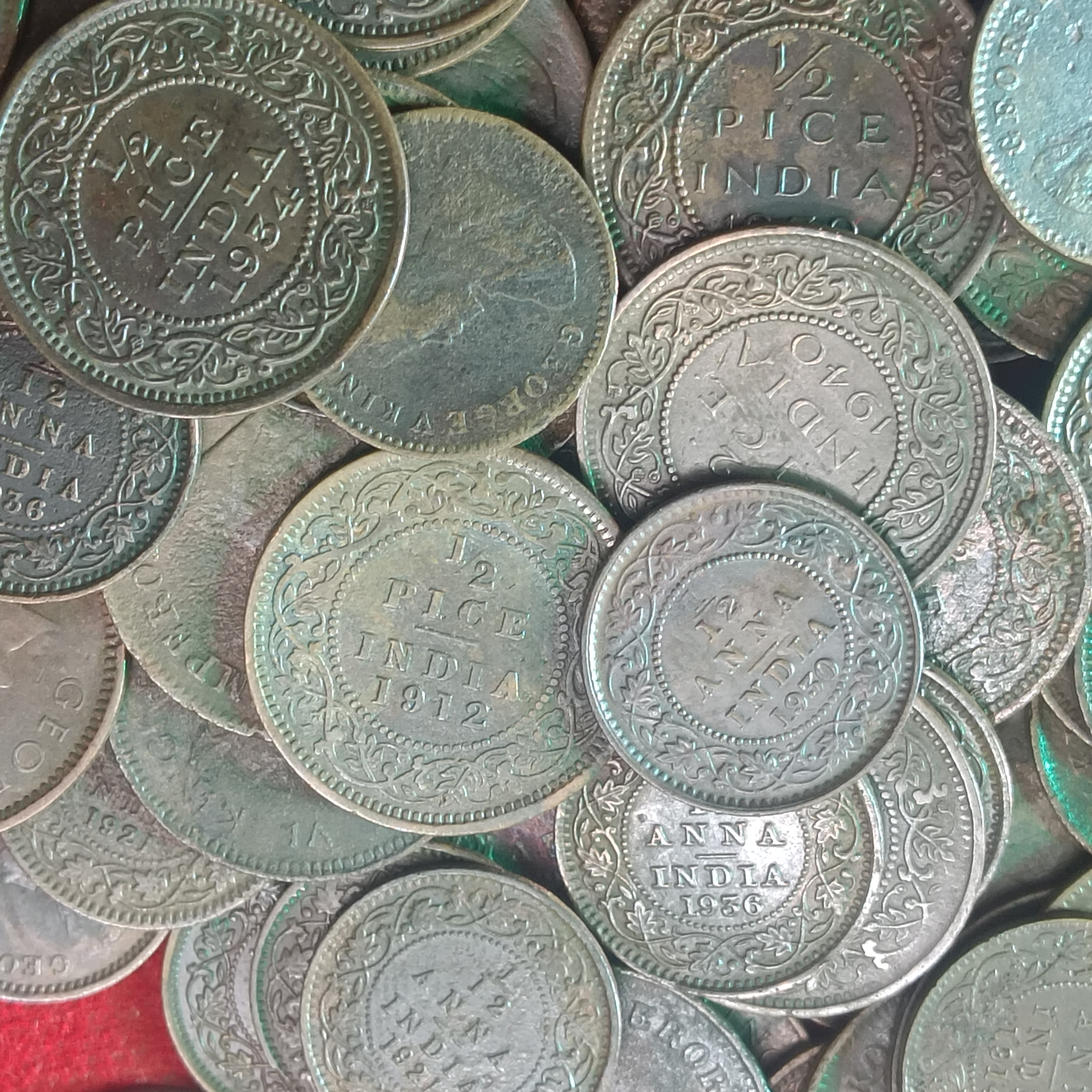 - George V or Vi 1/12 or 1/2 Anna 1917-1940 Mix 100 Pcs Given Aunc or Xf Condition British of India Coins