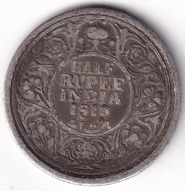 Half Rupee 1918 King George V Silver Bombay Mint Rare