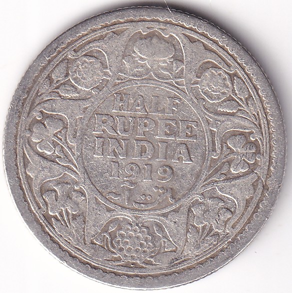 Half Rupee 1919 King George V Silver Coin Rare