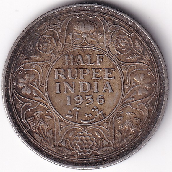 Half Rupee 1936 King George V Bombay Mint Silver Coin Rare