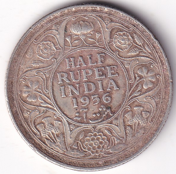 Half Rupee 1936 King George V Silver Bombay Mint Rare