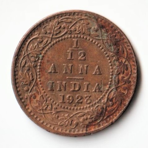 Rare 1/12 Anna 1926 Bronze Standard Circulation Coin of Bombay Mint King George V British India Coinage