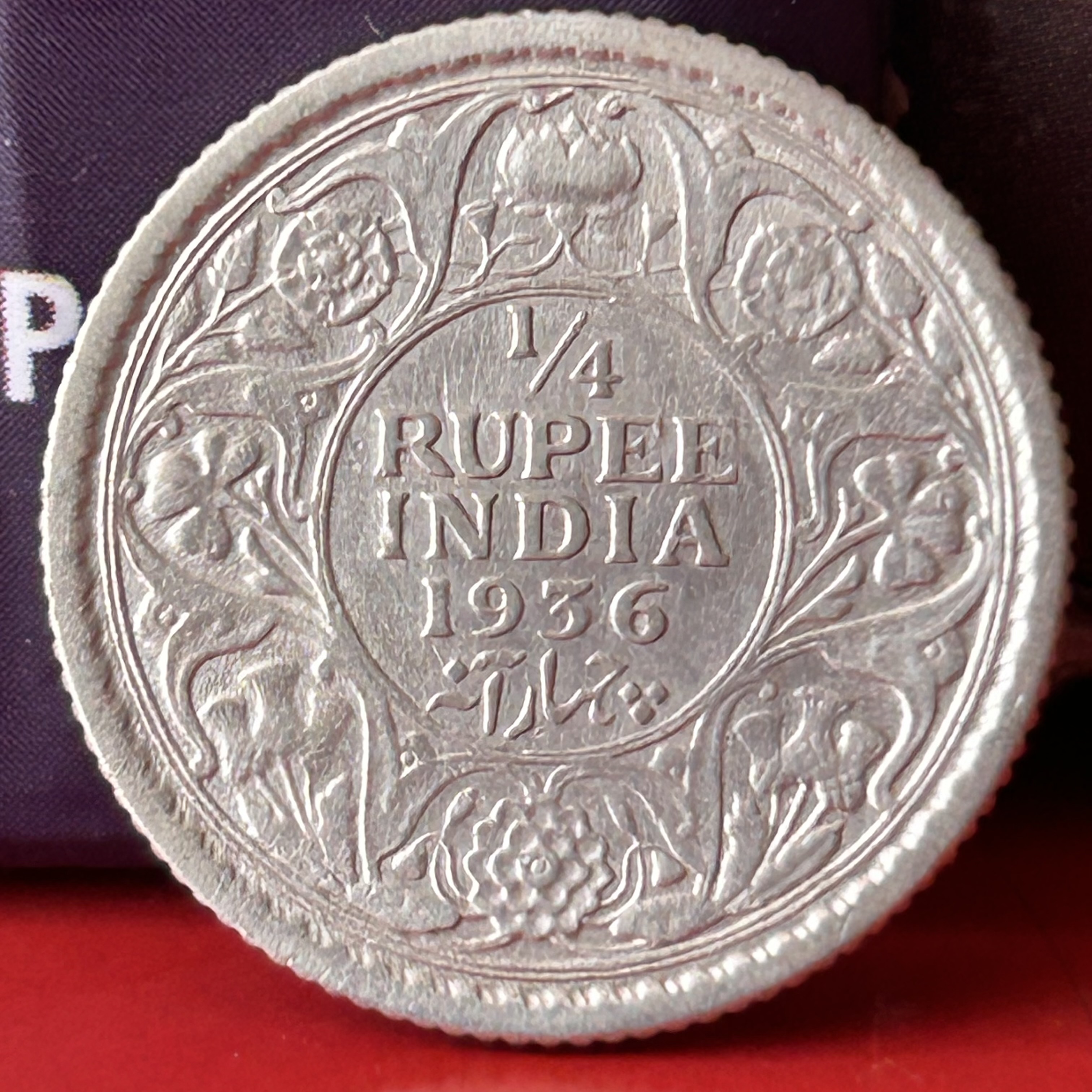 Rare 1/4 Rupee 1936 Silver Coin Calcutta Mint George V King Emperor British India Coin