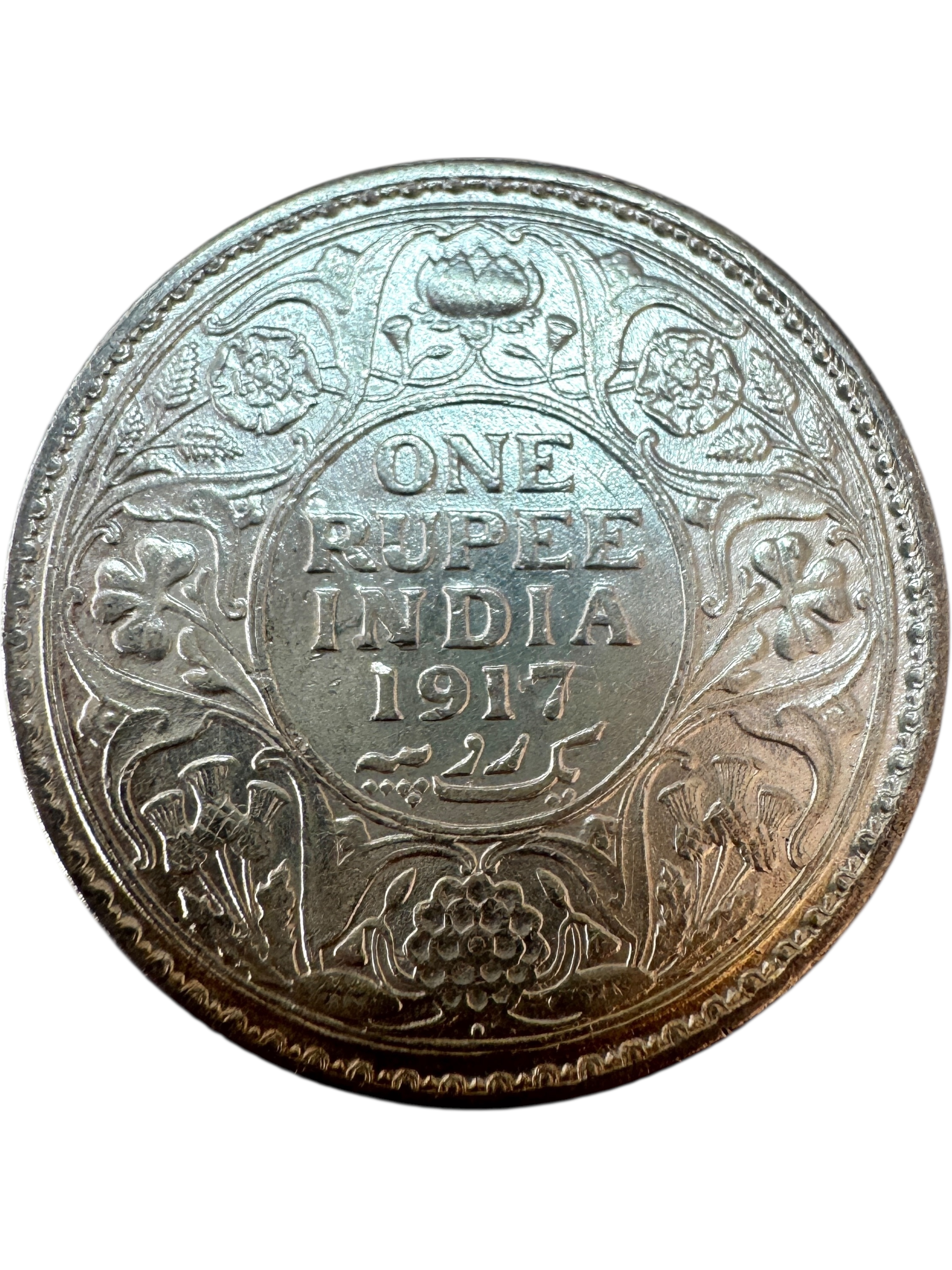 Re 1 British India King George V Rupee Silver Year 1917 Unique and Rare