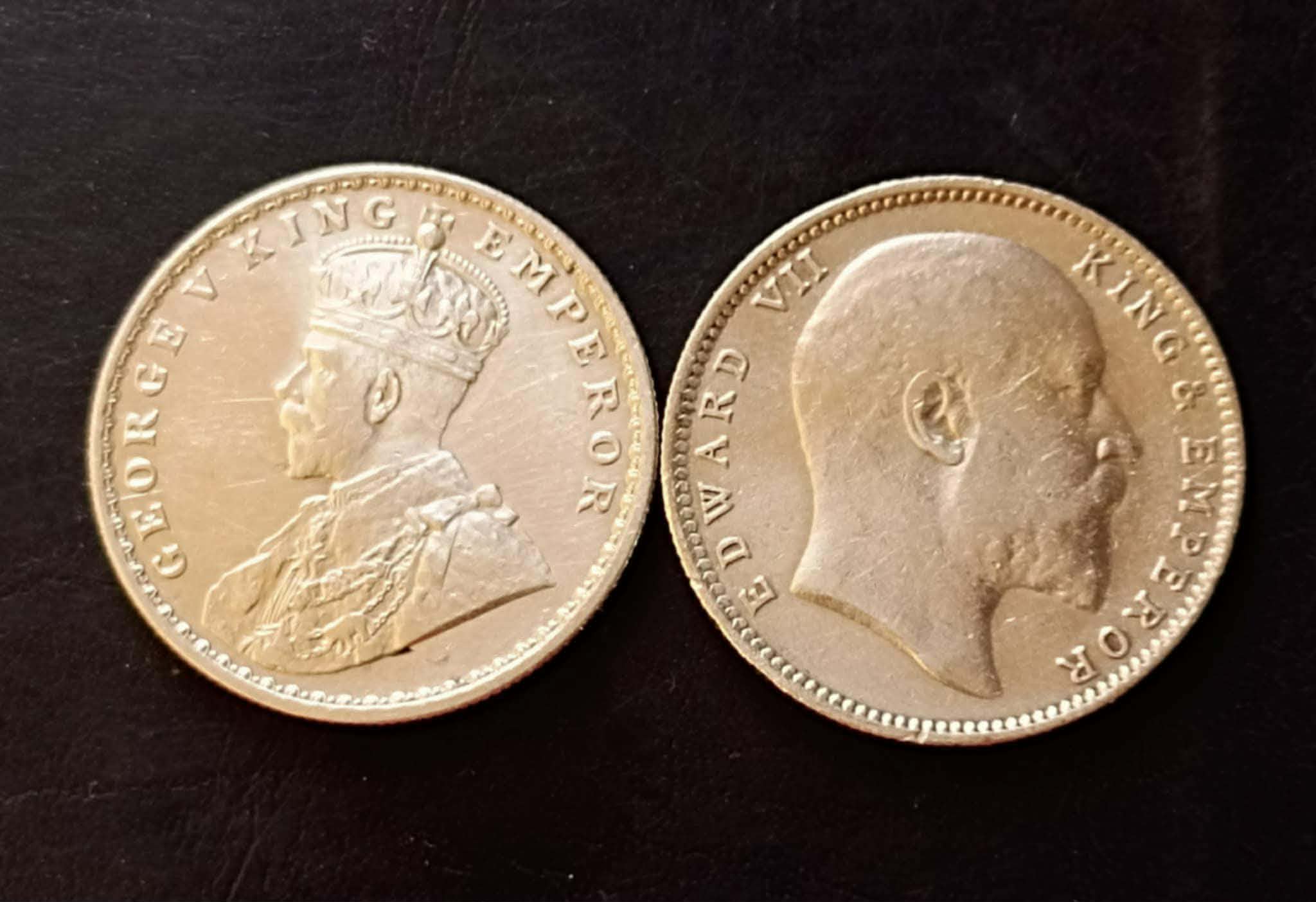 Silver British India Set of two pieces of 2 different portrait King and emperor George v King and emperor Edward VII Denominaton 1₹ Full silver Same and similar set are available