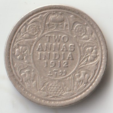Two Anna 1912 Silver Coin of King George V British India Coinage