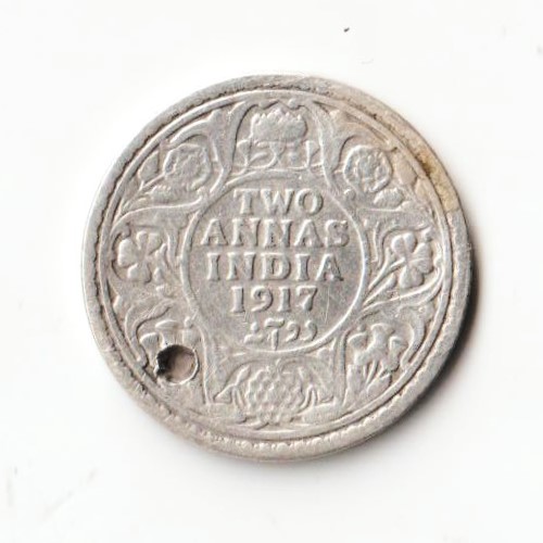 Two Anna India 1917 of George V King Emperor Silver British India Coin Calcutta Mint