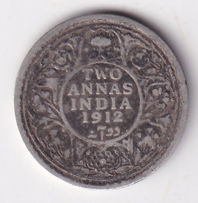 Two Annas 1912 George V King Silver Coin Ex Rare