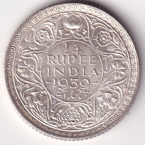 1/4 Rupee King George VI Silver 1939 UNC Condition Coin