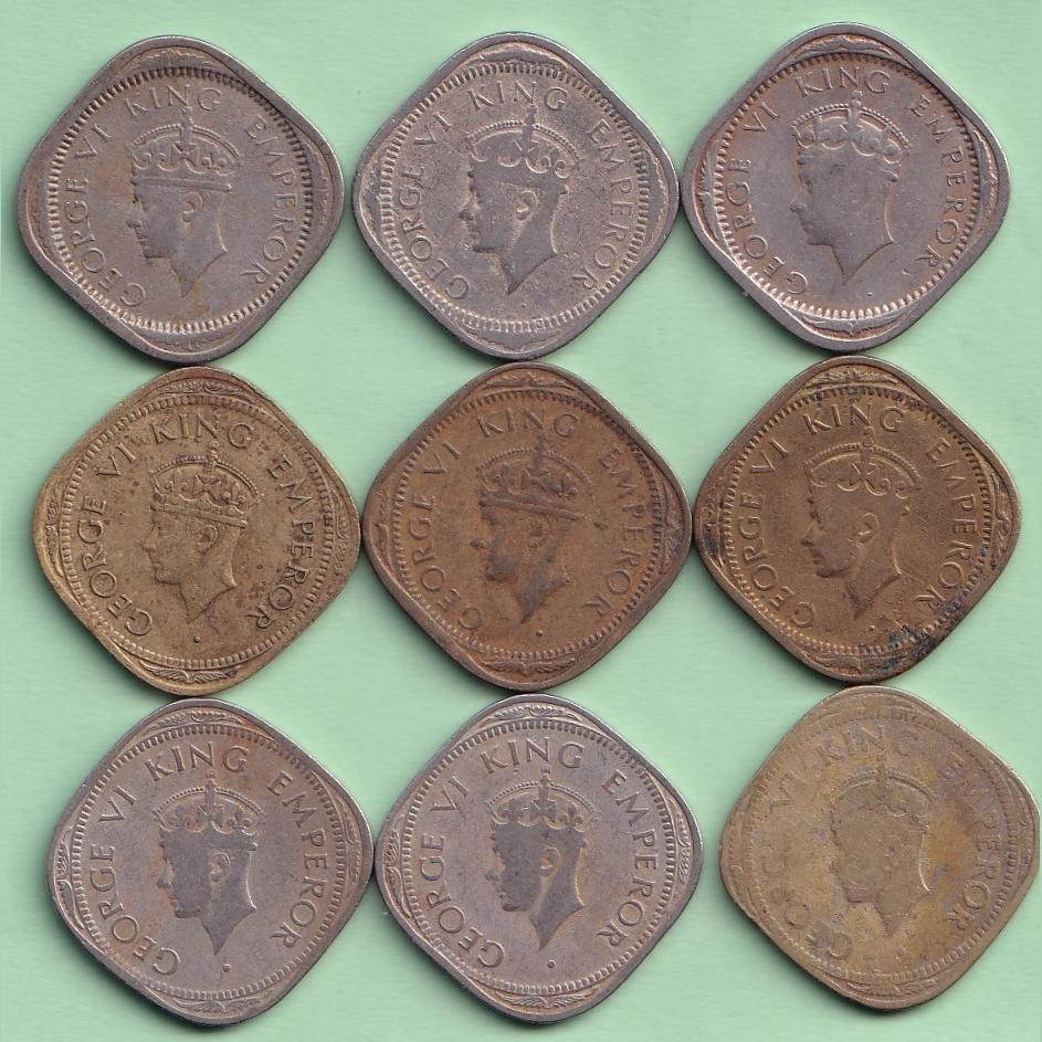 1939-1947 Complete Set Two Anna George Six British India Coin 9 Pcs Set #F7