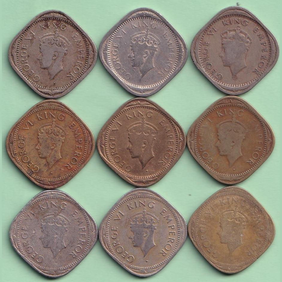 1939-1947 Complete Set Two Anna George Six British India Coin 9 Pcs Set #F9