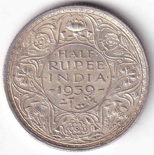 1939 British India Half Rupee George VI Bombay Mint Silver Coin