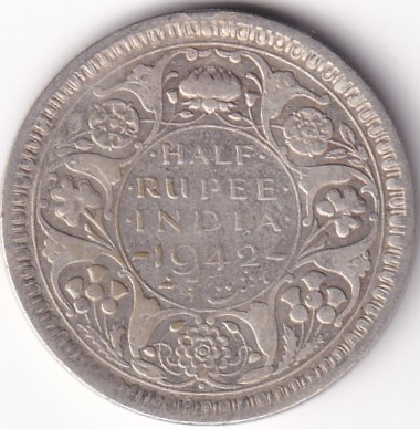1942 British India Half Rupee George VI Bombay Mint Silver Coin