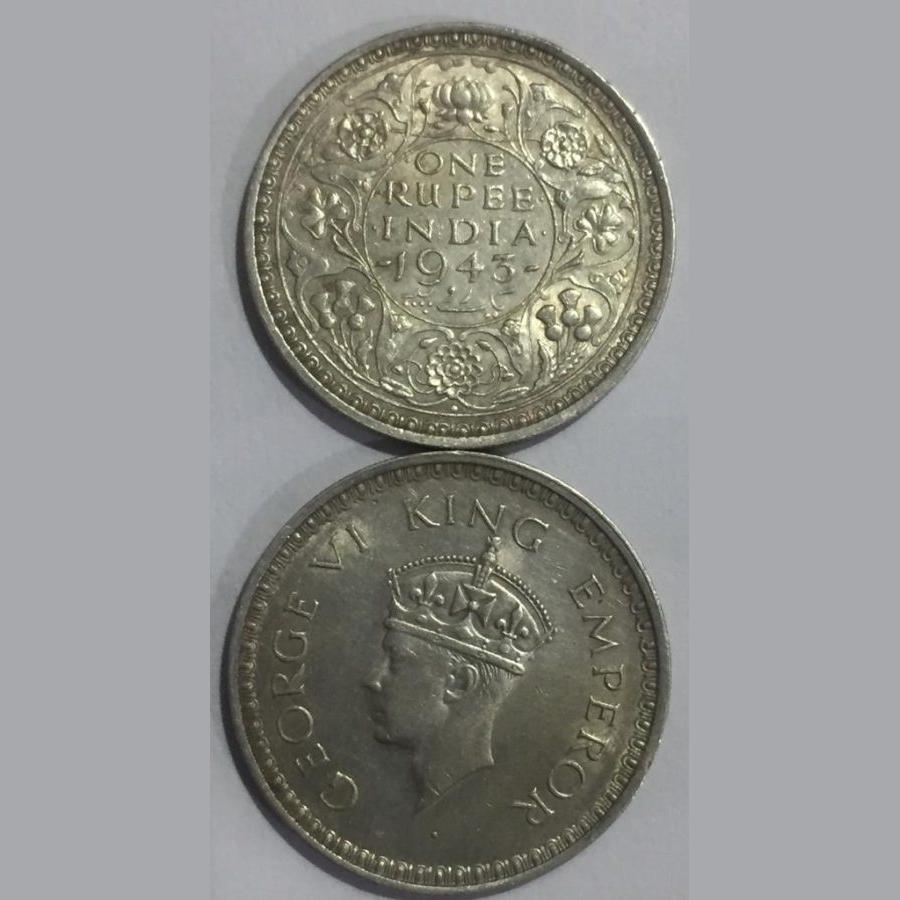 1943 George six. British india one Ruppes silver coin Top Condition coin 100% Original coin Buyer receive 1 Coin