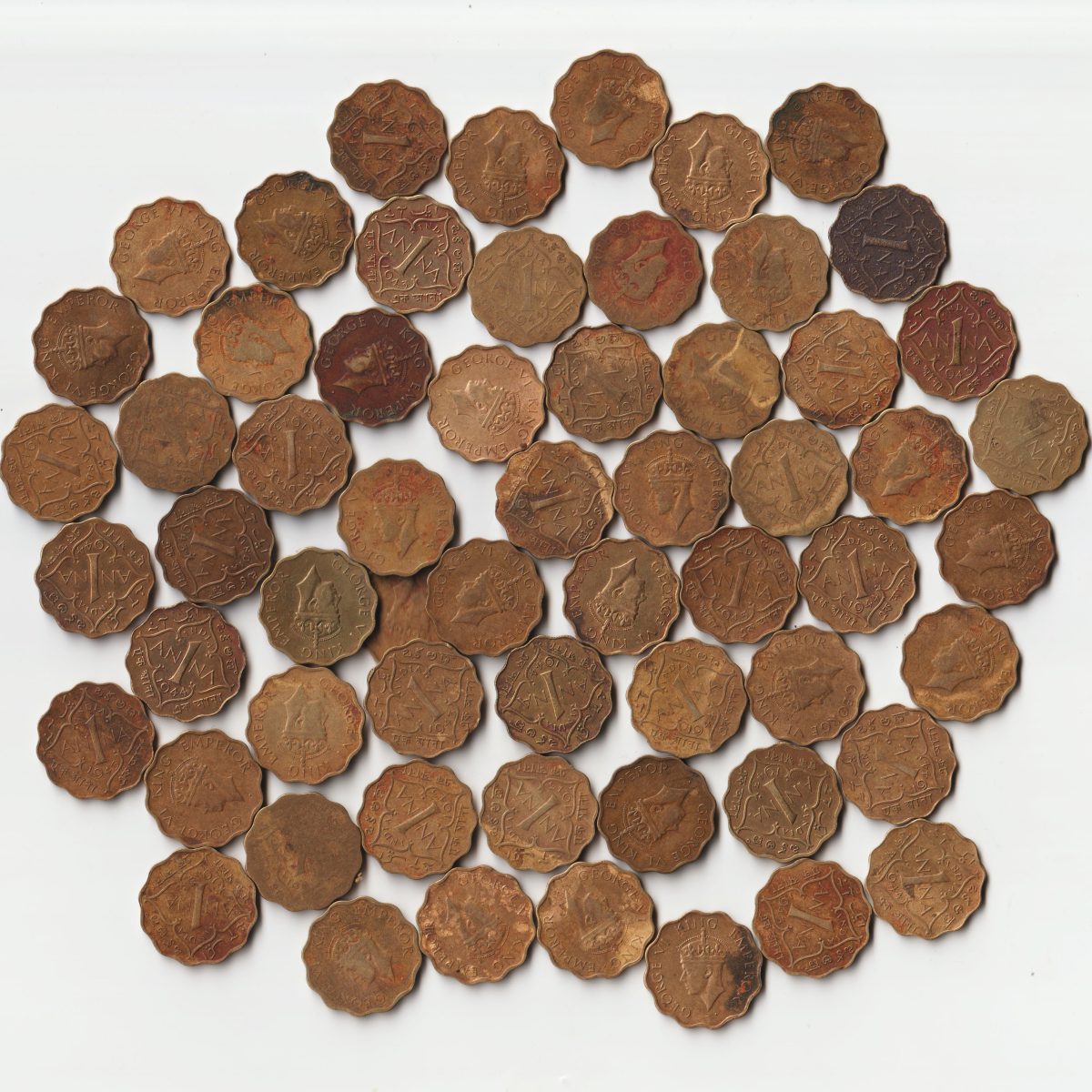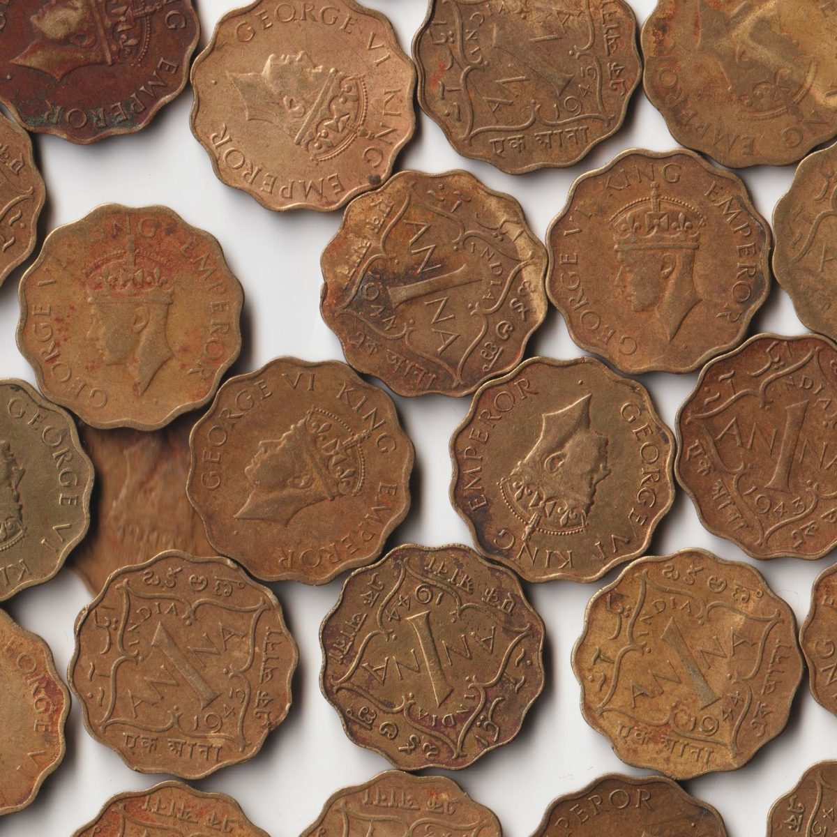 20 Coins Set of One Anna Copper-Nickel Coins of King George VI British India Coinage Randomly 20 Coins Set given From Lot