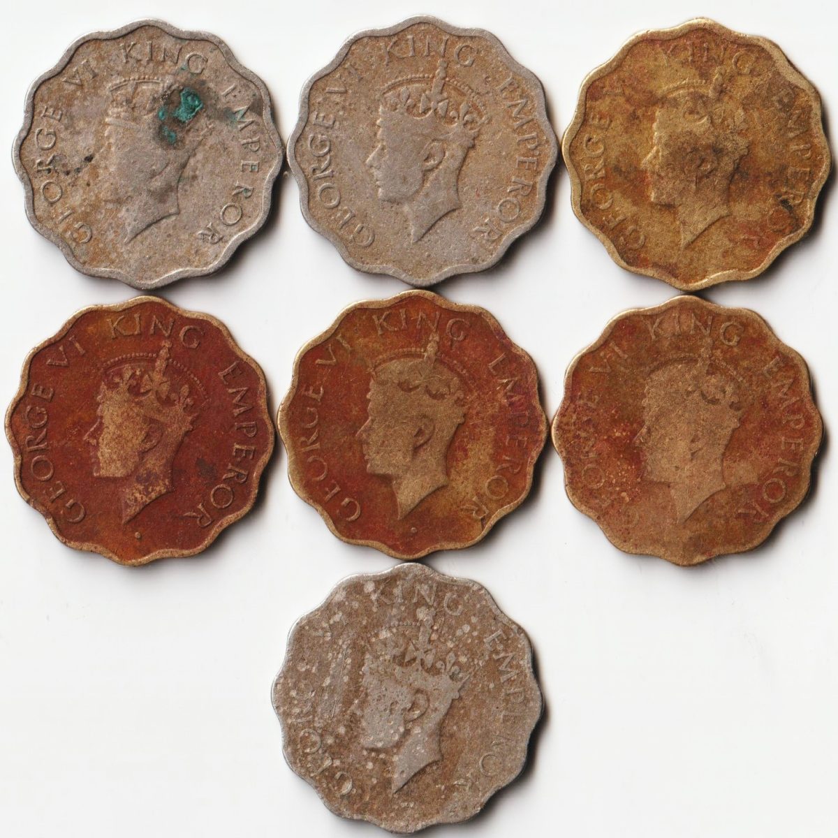 7 Coins Set of One Anna 1939 to1946 of George VI King Emperor British India Coinage