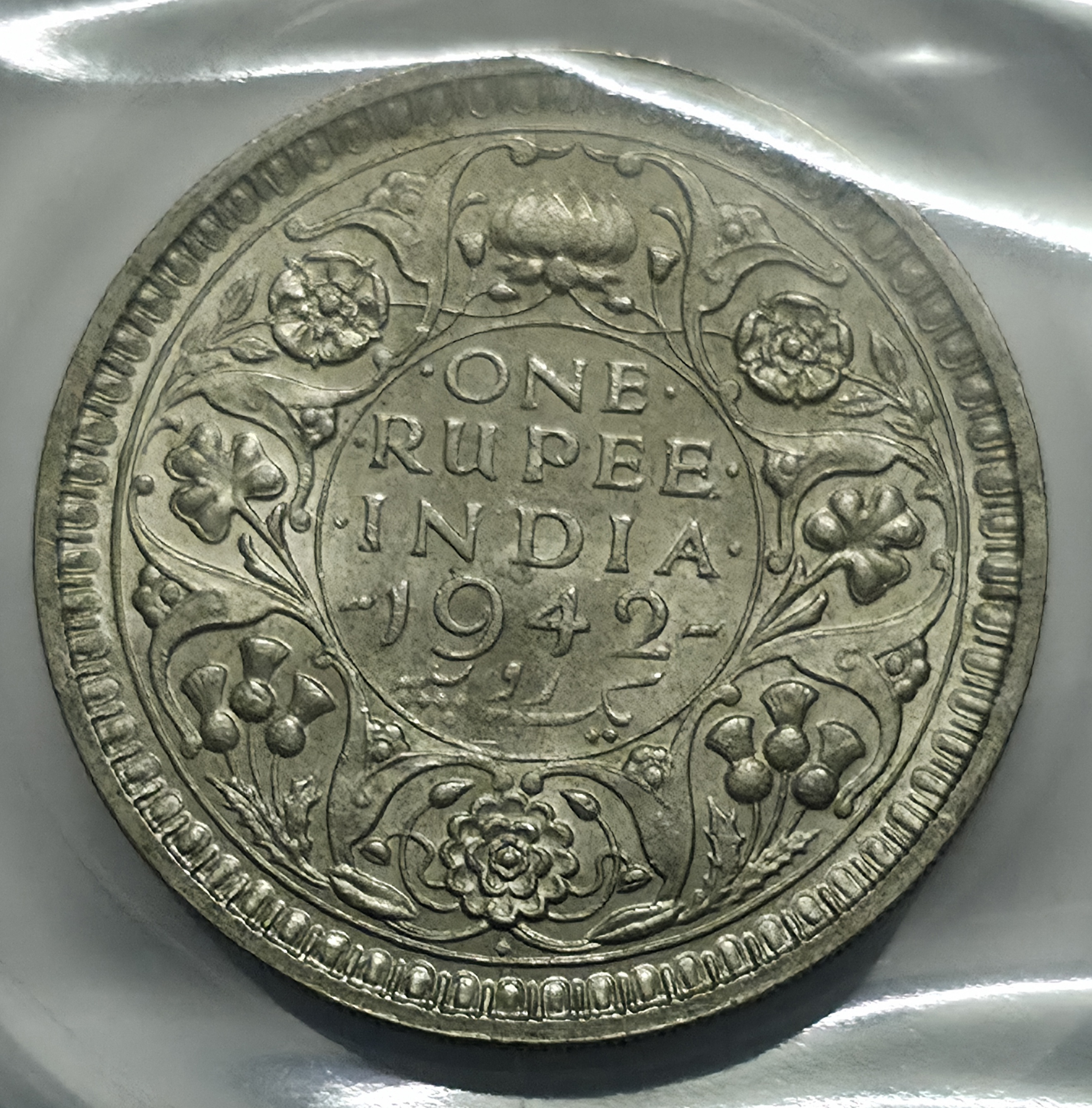 British India George VI One┬а Rupee 1942 Silver Coin Unc Rare
