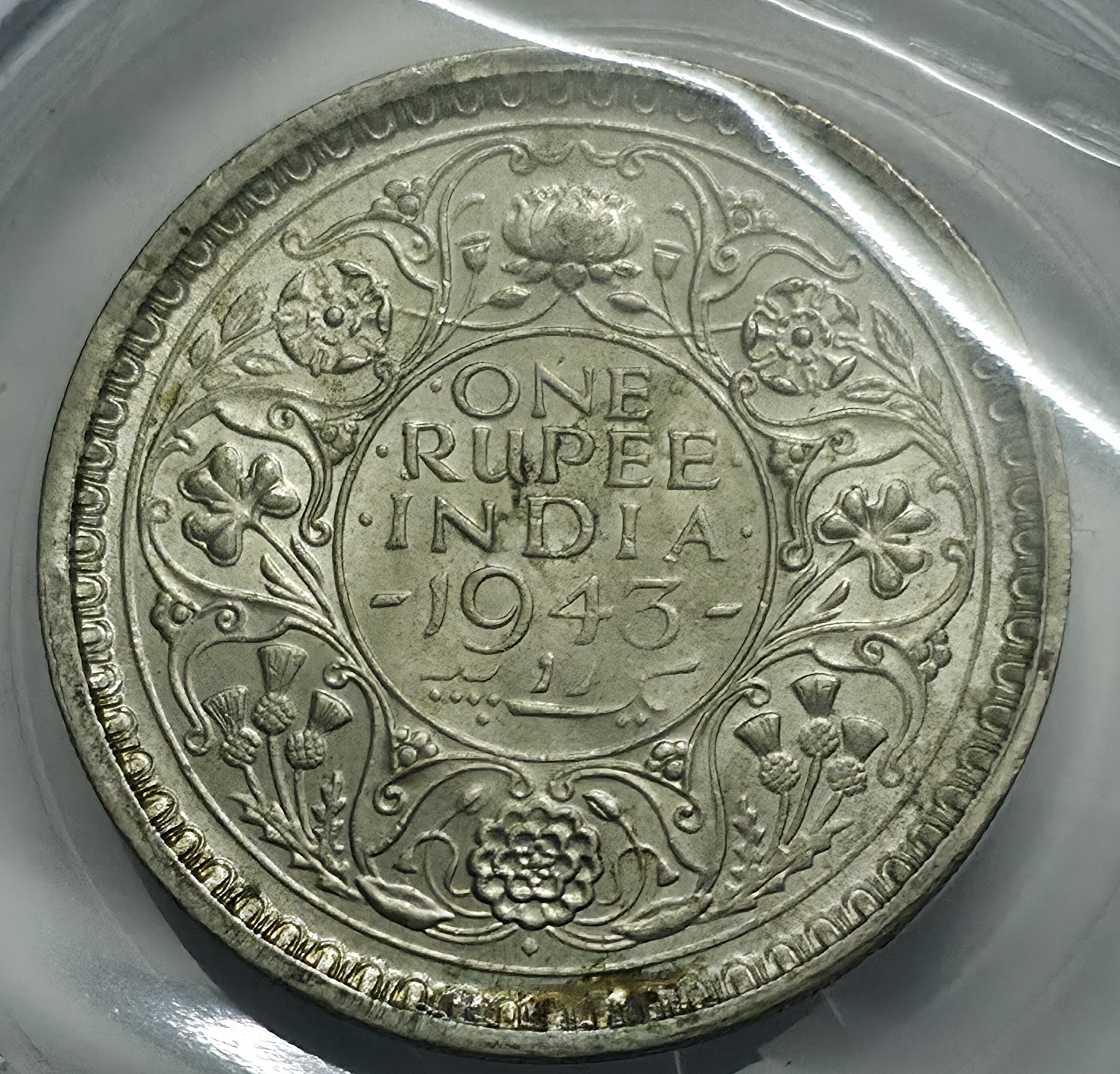 British India George VI One Rupee 1943 Silver Coin Unc Rare
