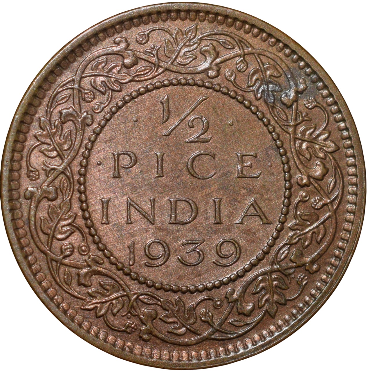 Bronze 1/2 Pice of George VI (AD 1940) of Calcutta Mint Extremely Fine