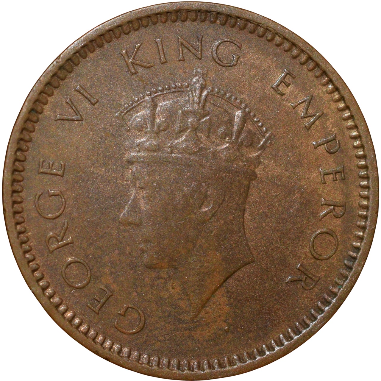 George VI, (AD 1940), Bronze 1/2 Pice, Calcutta Mint, Obv: George V facing left, Inscriptions around, Rev: Denomination & Date, 2.42 Gms, 20.70 mm, Extremely Fine, Scarce.