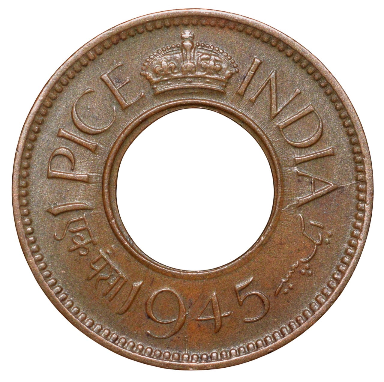 Bronze 1 Pice of George VI (AD 1945) of Calcutta Mint Flat Crown Type