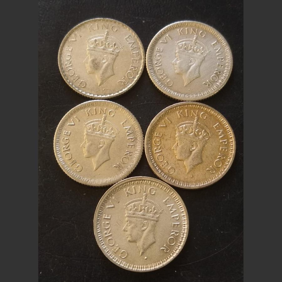 Collection King George Vl 5 Different Years 1/4 ₹ Quarterly Rupee Date Details 1940/42