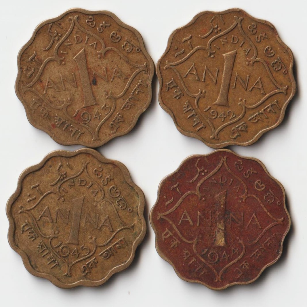 🔍 Rare 4 Coins Set of One Anna from 1942 to 1945