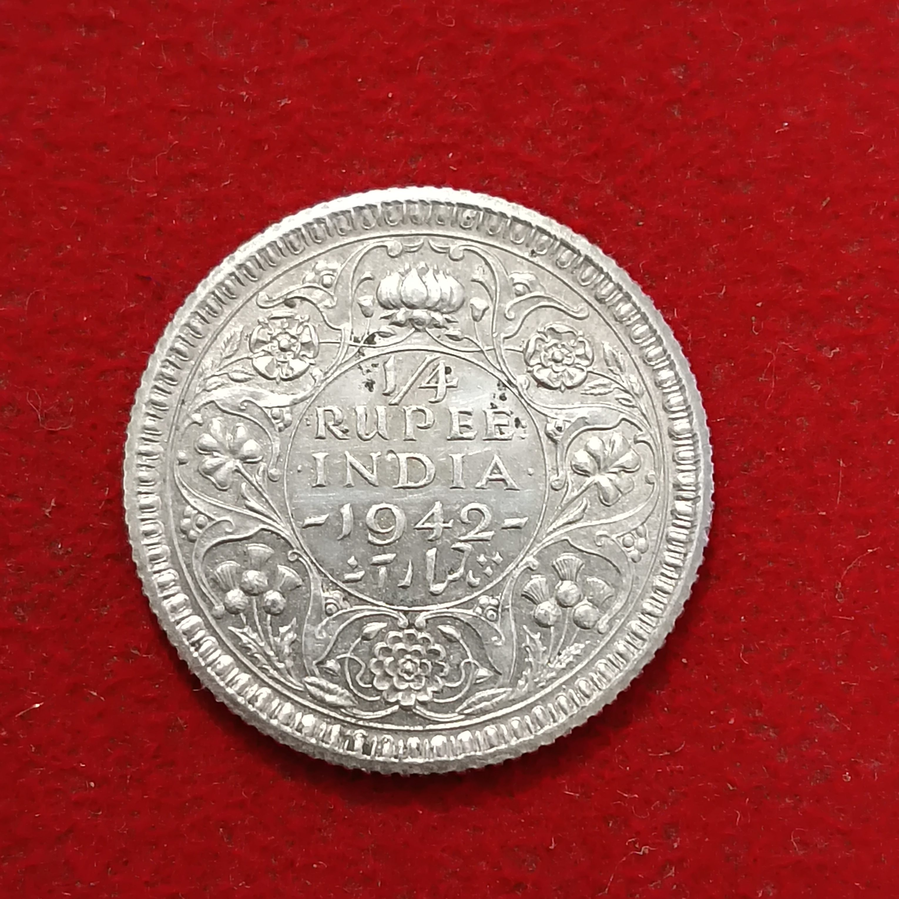 - George Vi 1/4 Rupee Silver Coin 1942 Year British of India