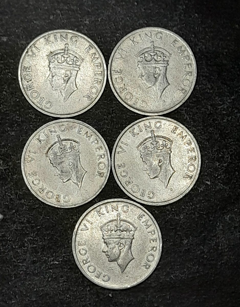- George Vi King Emperor Half Rupee 1946 or 47 5 Pcs Aunc Condition 04