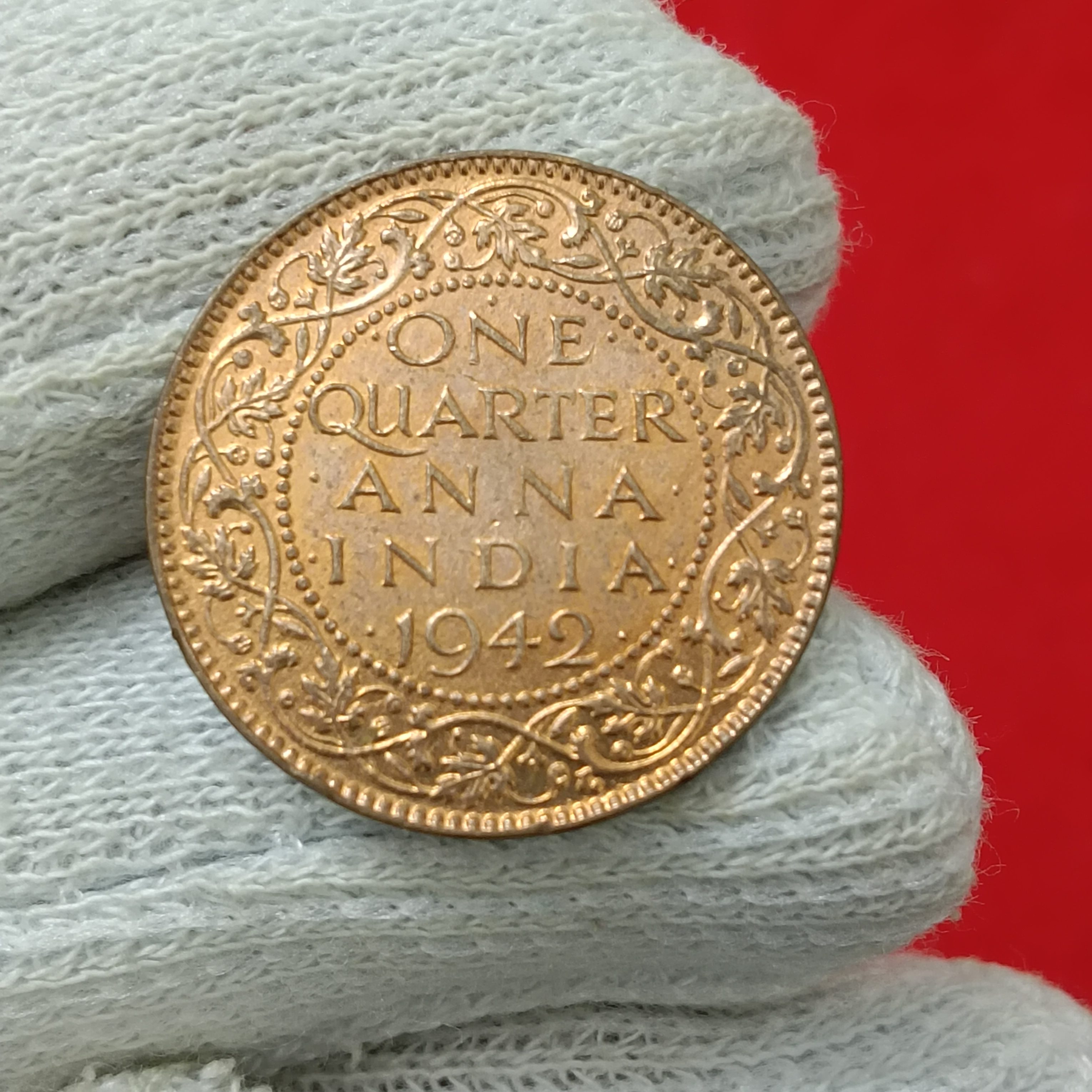 - George Vi One Quarter Anna 1942 Year Aunc Condition Calcutta Mint British of India