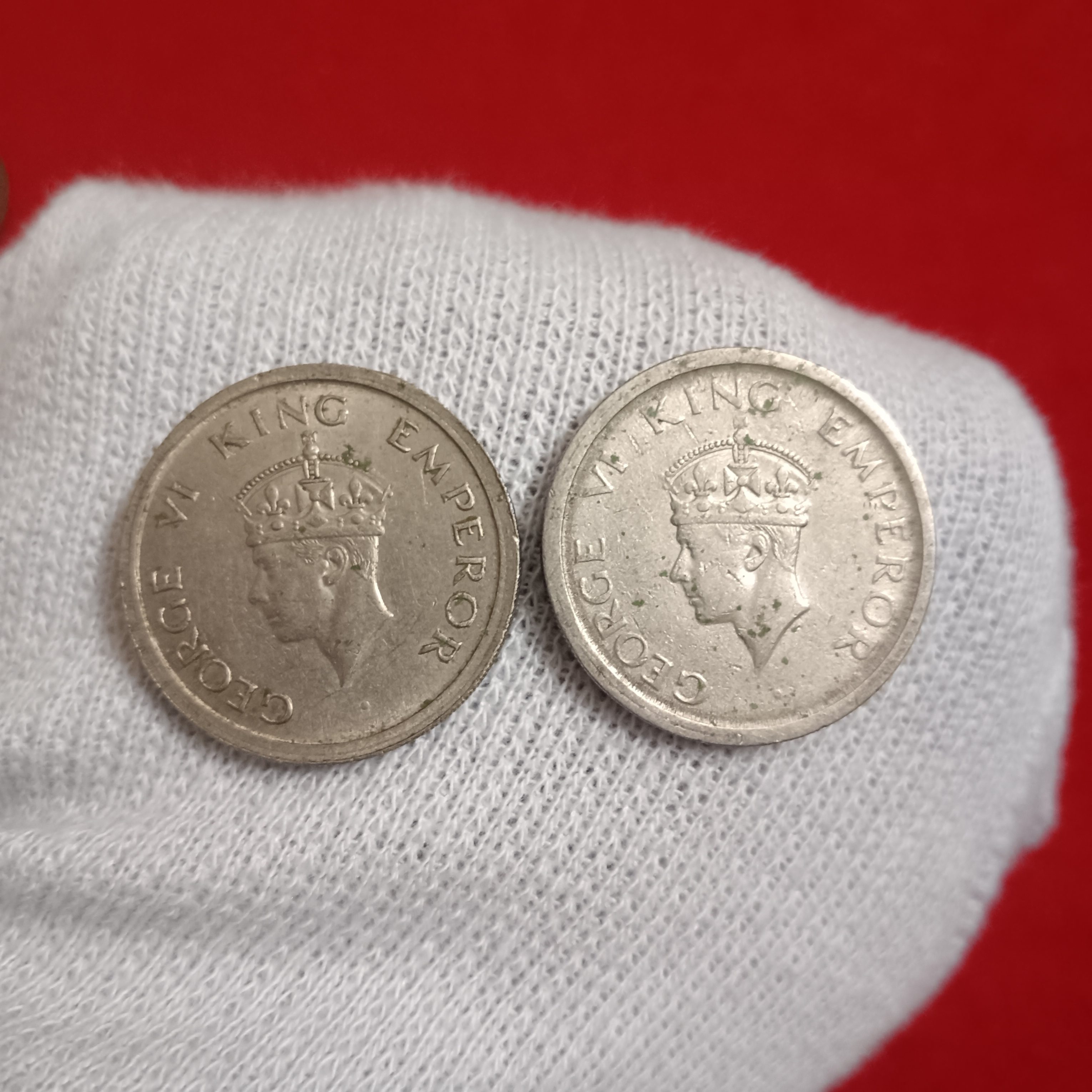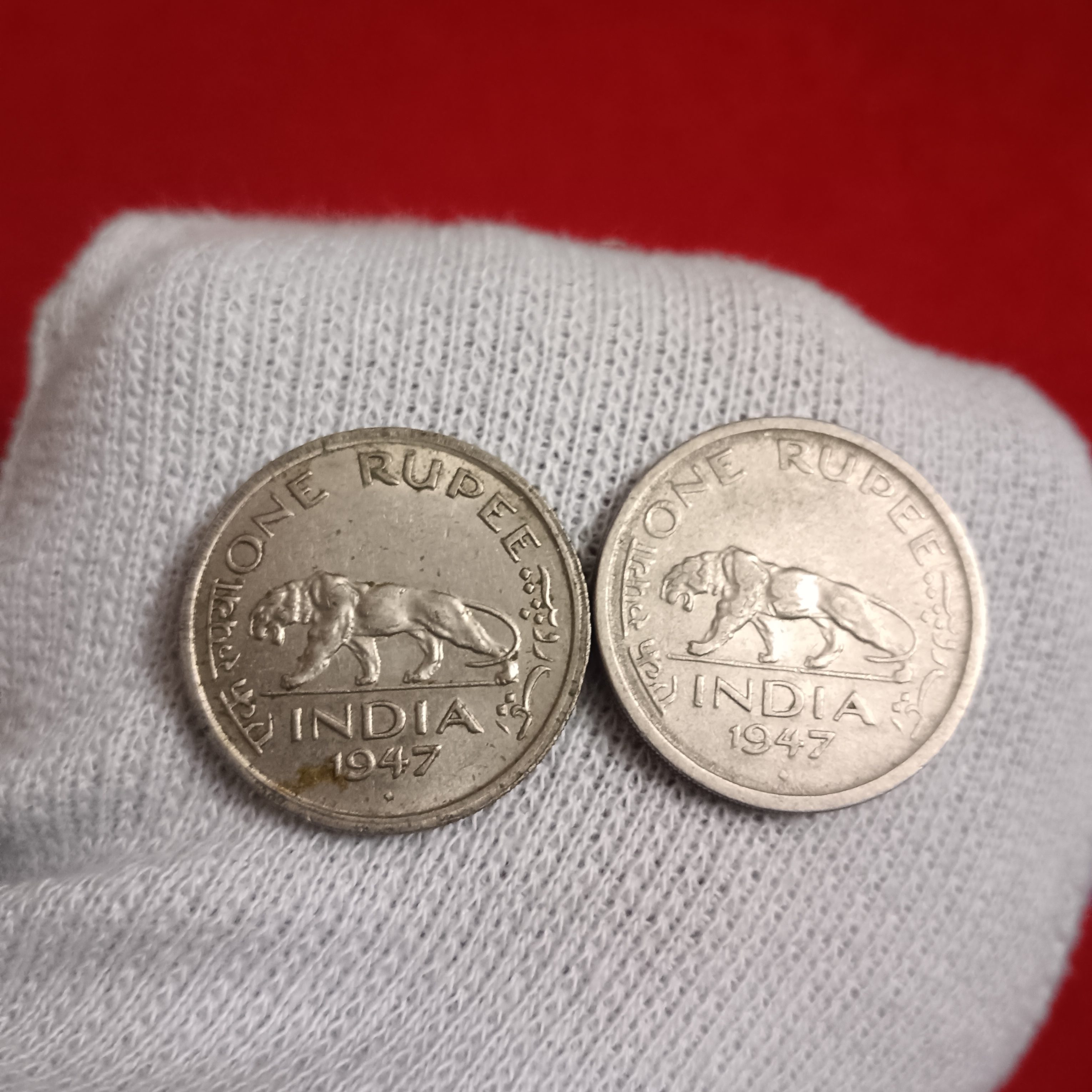 - George Vi One Rupee 1947 Year Bombay Mint 2 Pcs Given British of India