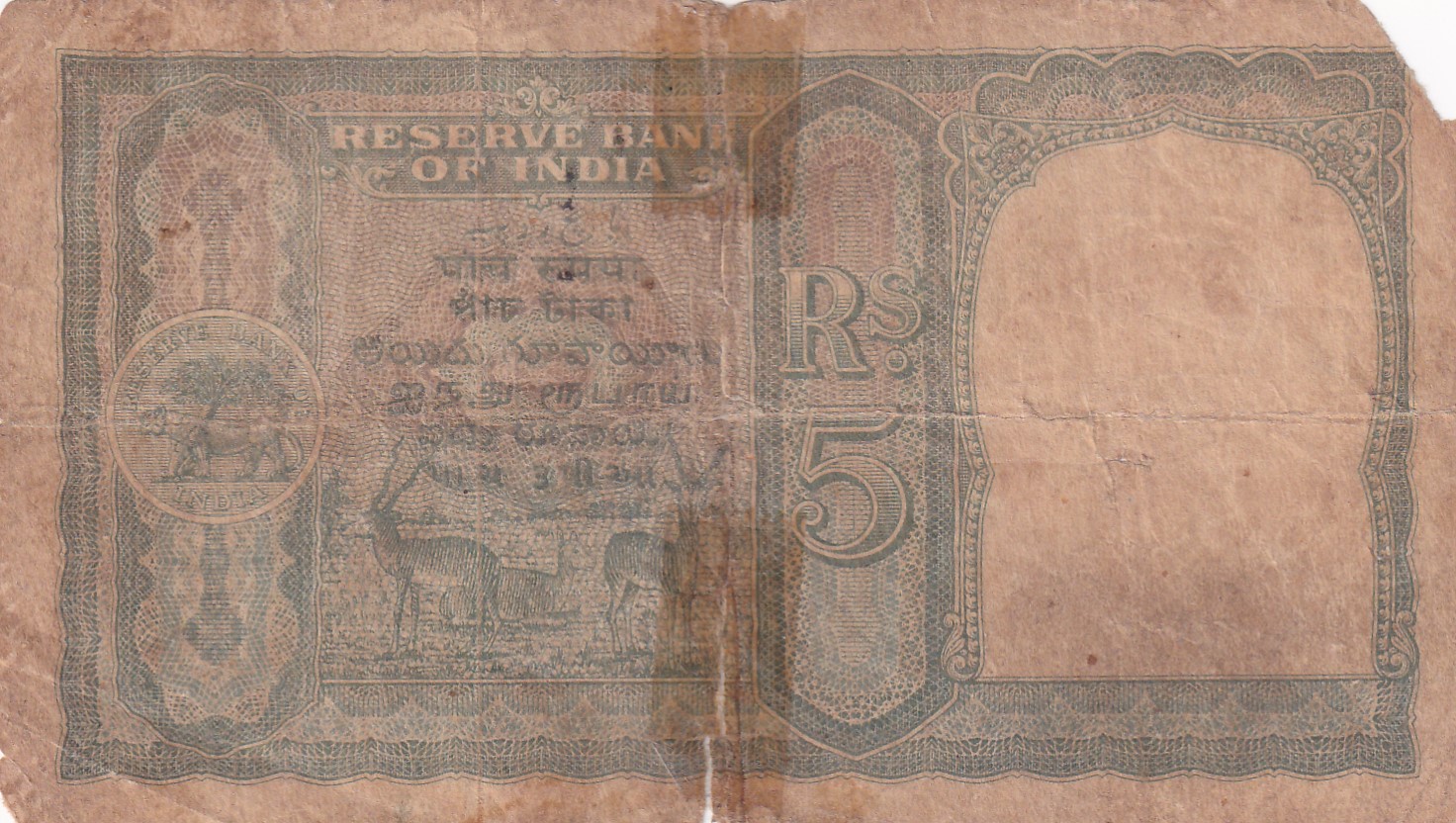 GOVERNMENT OF PAKISTAN 5 RUPEES GEORGE VI GOVERNOR C.D. DESHMUKH BRITISH – INDIA VERY RARE NOTE (LOWEST CONDITION)