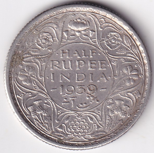 Half Rupee 1939 King George VI Silver Calcutta Mint Rare