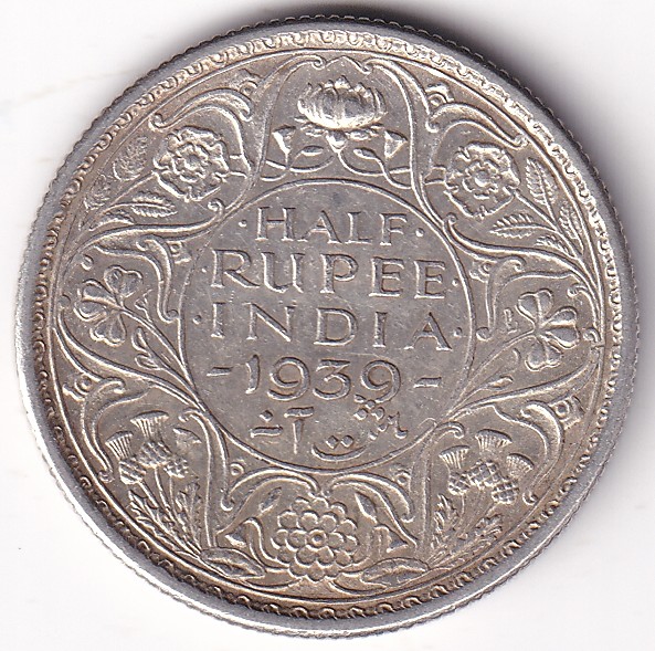 Half Rupee 1939 King George VI Silver Bombay Mint Rare