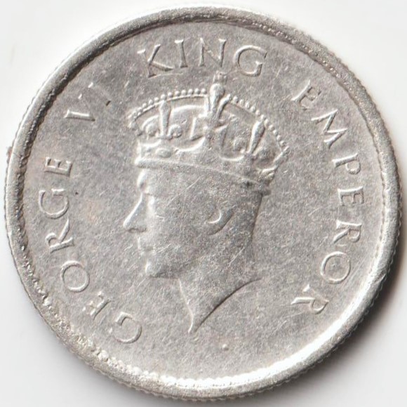 Rare Half Rupee 1939 Matured Head Silver Coin of King George VI British India Coinage